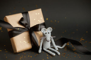 Christmas background. Xmas rat, mouse toy, symbol chinese happy